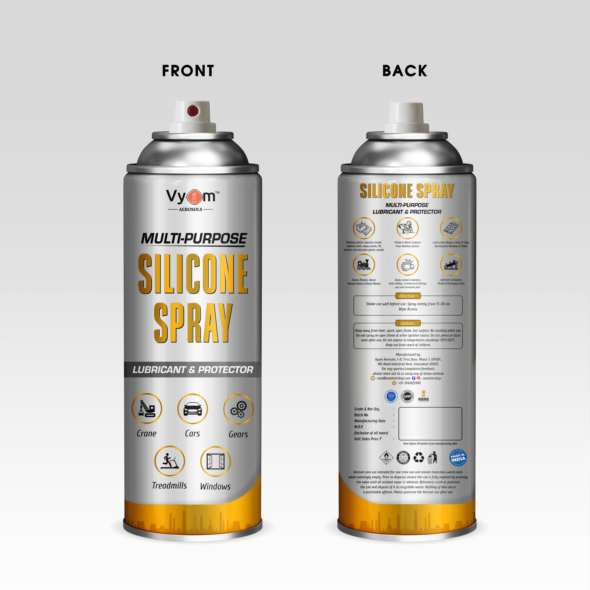 From squeaky car windows to a sticky treadmill, the Vyom Multi-Purpose Silicone Spray is the answer. This versatile spray lubricates, protects, and waterproofs in one simple step, with a formula that's safe for almost any surface.